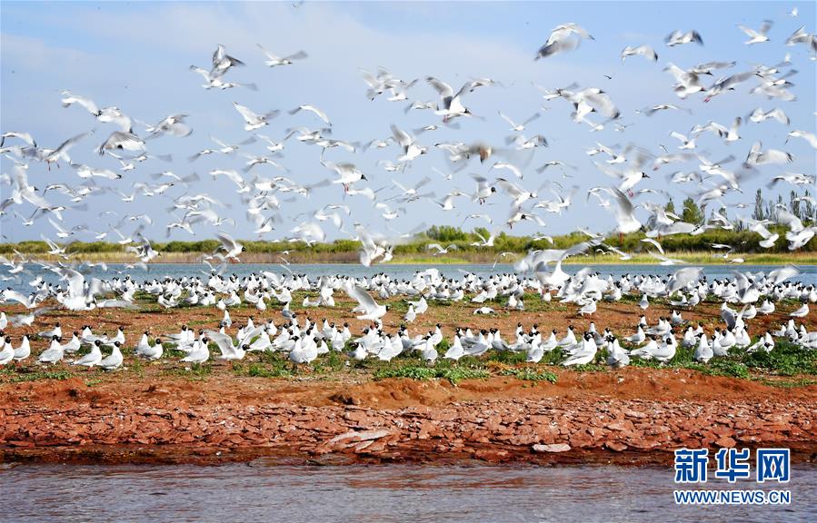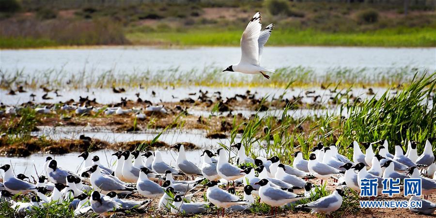 5月28日在陜西省神木市紅堿淖拍攝的遺鷗。陜西省神木市紅堿淖是中國最大的沙漠淡水湖,近年來隨著周邊生態(tài)環(huán)境改善,紅堿淖水位逐年提升,水域面積不斷擴大,每年四至八月,都會吸引大批遺鷗來此繁衍棲息,已成為遺鷗繁殖的重要基地。新華社記者陶明攝