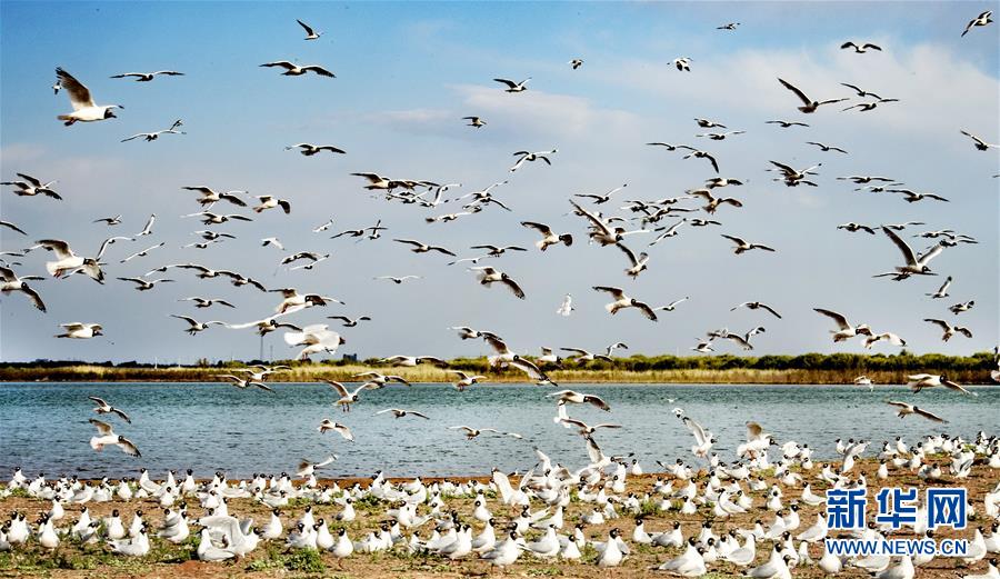 5月27日在陜西省神木市紅堿淖拍攝的遺鷗。陜西省神木市紅堿淖是中國最大的沙漠淡水湖,近年來隨著周邊生態(tài)環(huán)境改善,紅堿淖水位逐年提升,水域面積不斷擴大,每年四至八月,都會吸引大批遺鷗來此繁衍棲息,已成為遺鷗繁殖的重要基地。新華社記者劉瀟攝