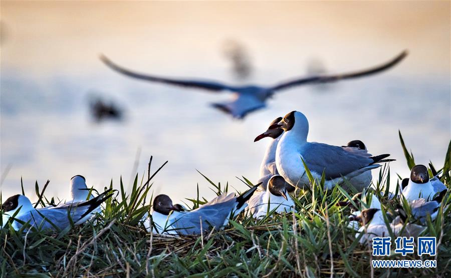 5月28日在陜西省神木市紅堿淖拍攝的遺鷗。陜西省神木市紅堿淖是中國最大的沙漠淡水湖,近年來隨著周邊生態(tài)環(huán)境改善,紅堿淖水位逐年提升,水域面積不斷擴大,每年四至八月,都會吸引大批遺鷗來此繁衍棲息,已成為遺鷗繁殖的重要基地。新華社記者劉瀟攝