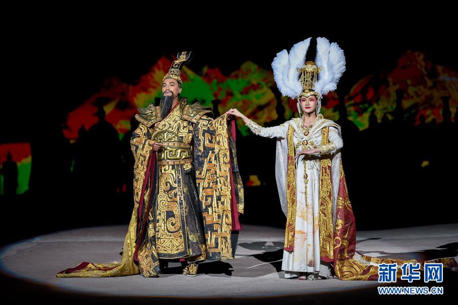 5月28日,演員在大型實景神話音樂劇《昆侖之約》中表演。5月28日,新疆文化旅游新名片——大型實景神話音樂劇《昆侖之約》在烏魯木齊南山景區(qū)上演。該劇融自然山水之美、藝術文化之光、現(xiàn)代科技之新于一體,為市民獻上一場視聽盛宴。新華社記者丁磊攝