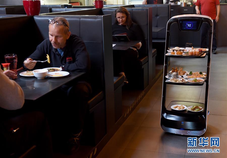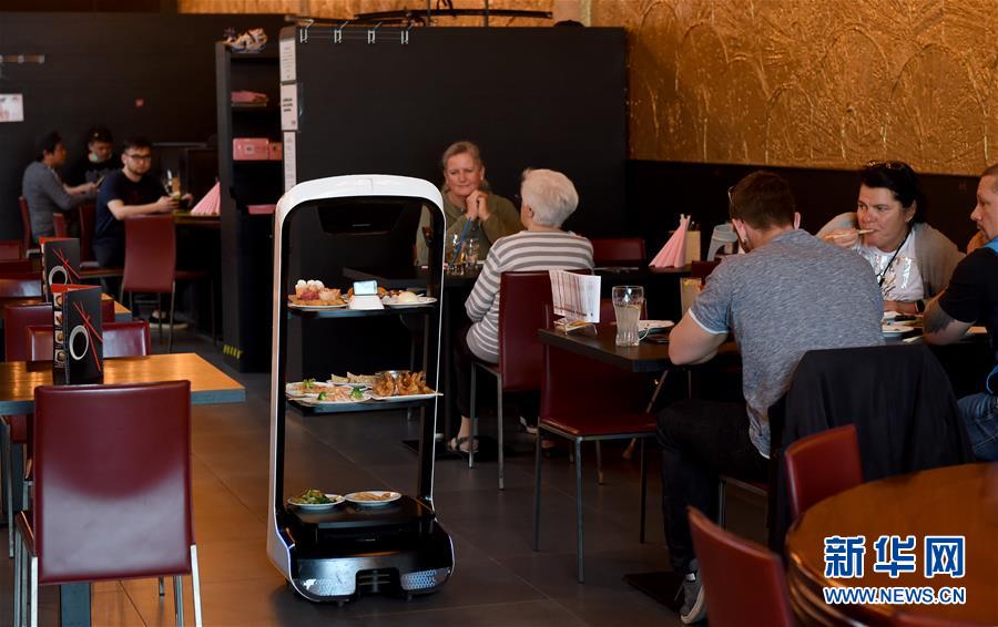 5月28日,在奧地利維也納一家亞洲餐廳內(nèi),機器人給顧客上菜。維也納的一家亞洲餐廳于疫情期間重新營業(yè)后,更多利用機器人上菜,以減少服務(wù)員和顧客之間的非必要接觸。新華社記者郭晨攝