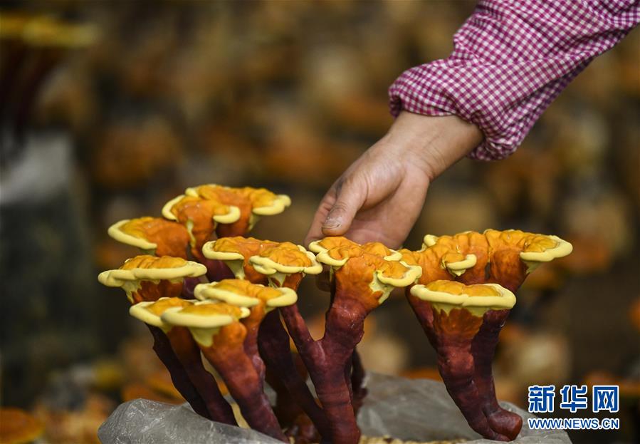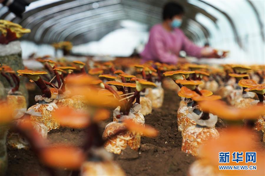 5月30日,在山東省棗莊市嶧城區(qū)峨山鎮(zhèn)食用菌培植扶貧基地,工人在進(jìn)行靈芝種植管理。為了幫助貧困戶穩(wěn)定脫貧,山東省棗莊市嶧城區(qū)峨山鎮(zhèn)采取“公司+基地+農(nóng)戶”的經(jīng)營模式,建立食用菌培植扶貧基地,發(fā)展食用菌種植產(chǎn)業(yè),惠及160余名貧困戶。目前,基地已集菌種試驗(yàn)、培育、生產(chǎn)、銷售于一體,年銷售菌棒500多萬袋,生產(chǎn)各類鮮菇1200余噸。新華社記者 范長國 攝