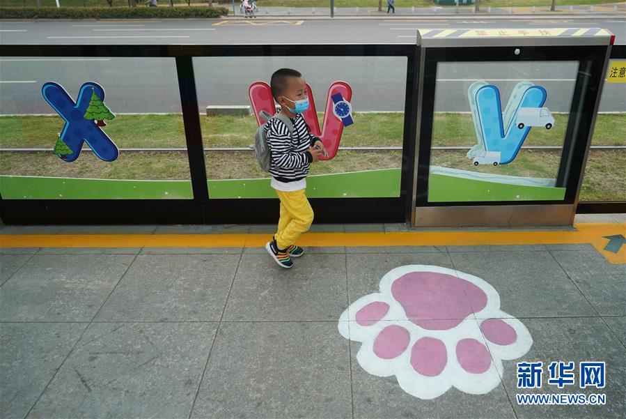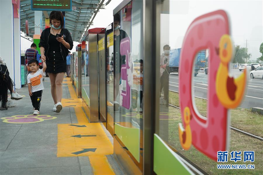 5月31日,一名小乘客在南京市建鄴區(qū)河西新城有軌電車(chē)友誼街站候車(chē)。新華社記者季春鵬攝