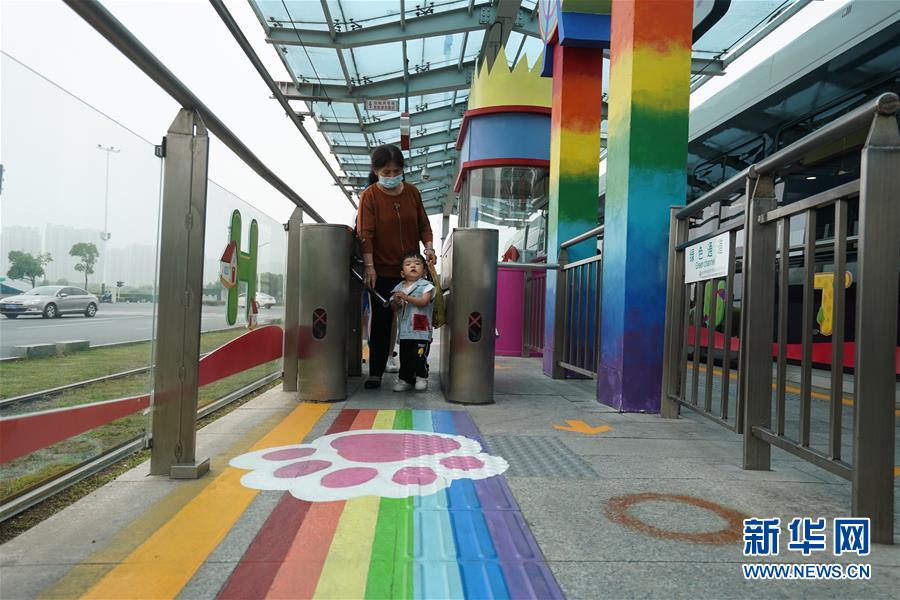 5月31日,乘客在南京市建鄴區(qū)河西新城有軌電車(chē)友誼街站候車(chē)?!傲弧眹?guó)際兒童節(jié)前夕,江蘇省南京市建鄴區(qū)河西新城有軌電車(chē)友誼街站裝扮一新,站臺(tái)上的城堡、熱氣球等充滿童趣的元素讓乘客仿佛置身“童話世界”。該站臨近南京市兒童醫(yī)院河西院區(qū),家長(zhǎng)和兒童乘客較多。新華社記者季春鵬攝