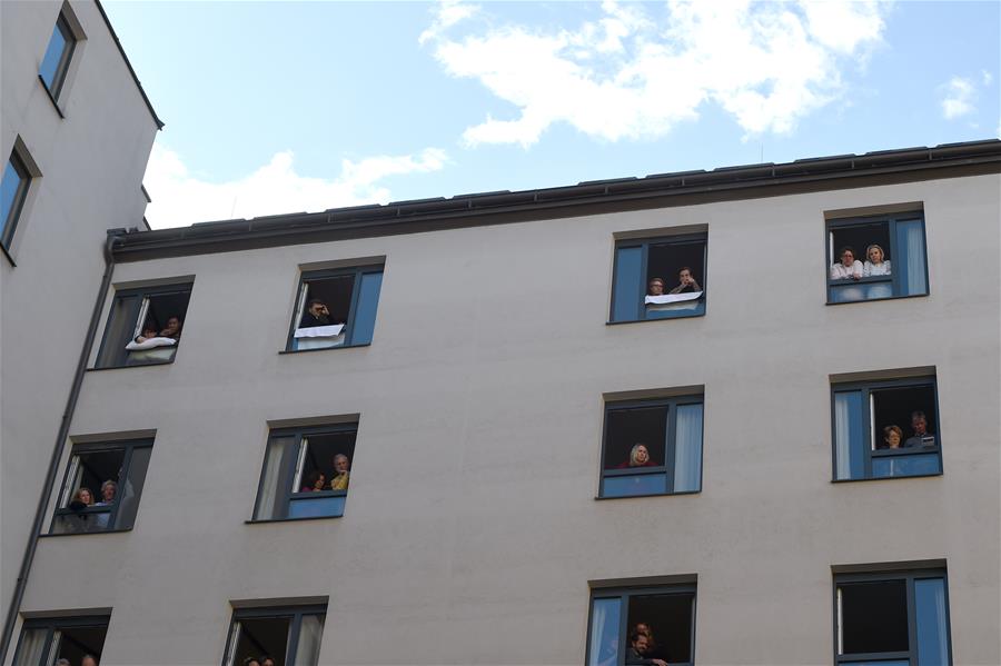 5月30日,在奧地利維也納“時代精神”酒店的庭院內(nèi),歌劇樂團(tuán)為觀眾演出。當(dāng)日,奧地利首都維也納的一家名為“時代精神”的酒店為迎接“解封”后恢復(fù)營業(yè),在其庭院內(nèi)舉辦“窗口音樂會”。按照奧政府此前公布的“解封”時間表,從29日起,賓館酒店以及健身房、游泳池和游樂場等休閑娛樂場所有條件恢復(fù)運(yùn)營。新華社記者郭晨攝