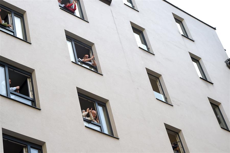 5月30日,在奧地利維也納“時(shí)代精神”酒店內(nèi),人們在房間窗口欣賞歌劇演出。當(dāng)日,奧地利首都維也納的一家名為“時(shí)代精神”的酒店為迎接“解封”后恢復(fù)營業(yè),在其庭院內(nèi)舉辦“窗口音樂會”。按照奧政府此前公布的“解封”時(shí)間表,從29日起,賓館酒店以及健身房、游泳池和游樂場等休閑娛樂場所有條件恢復(fù)運(yùn)營。新華社記者郭晨攝