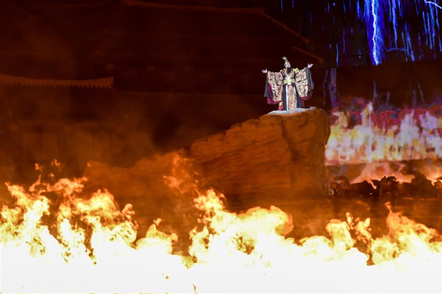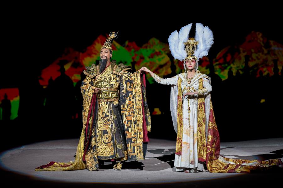 5月28日,演員在大型實(shí)景神話(huà)音樂(lè)劇《昆侖之約》中表演。5月28日,新疆文化旅游新名片——大型實(shí)景神話(huà)音樂(lè)劇《昆侖之約》在烏魯木齊南山景區(qū)上演。該劇融自然山水之美、藝術(shù)文化之光、現(xiàn)代科技之新于一體,為市民獻(xiàn)上一場(chǎng)視聽(tīng)盛宴。新華社記者丁磊攝。