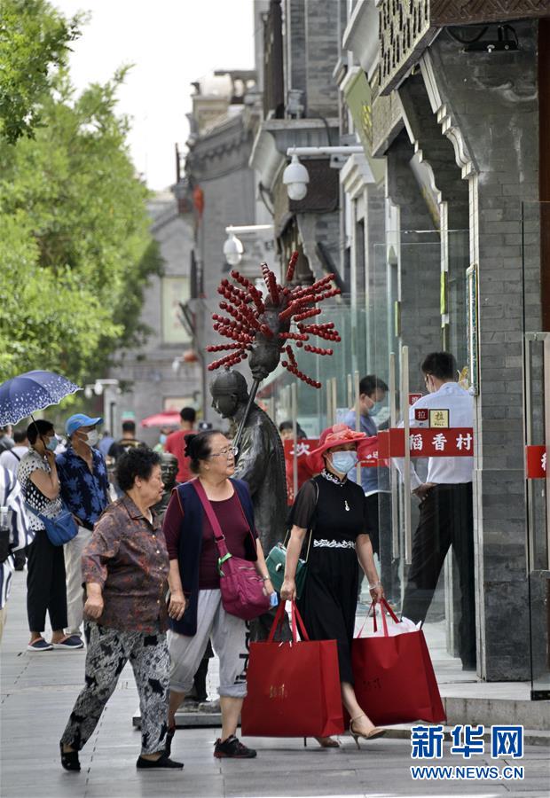 6月3日,市民及游客在前門步行街購(gòu)物觀光。近日,游人和市民紛紛來(lái)到北京市的王府井、西單、前門大街等著名商業(yè)街購(gòu)物休閑,這些老商業(yè)街開始逐步恢復(fù)昔日的繁華。新華社記者李欣攝。