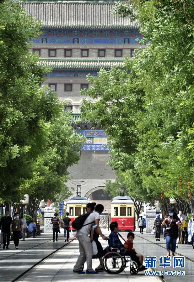 6月3日,市民及游客行走在前門步行街。近日,游人和市民紛紛來(lái)到北京市的王府井、西單、前門大街等著名商業(yè)街購(gòu)物休閑,這些老商業(yè)街開始逐步恢復(fù)昔日的繁華。新華社記者李欣攝。