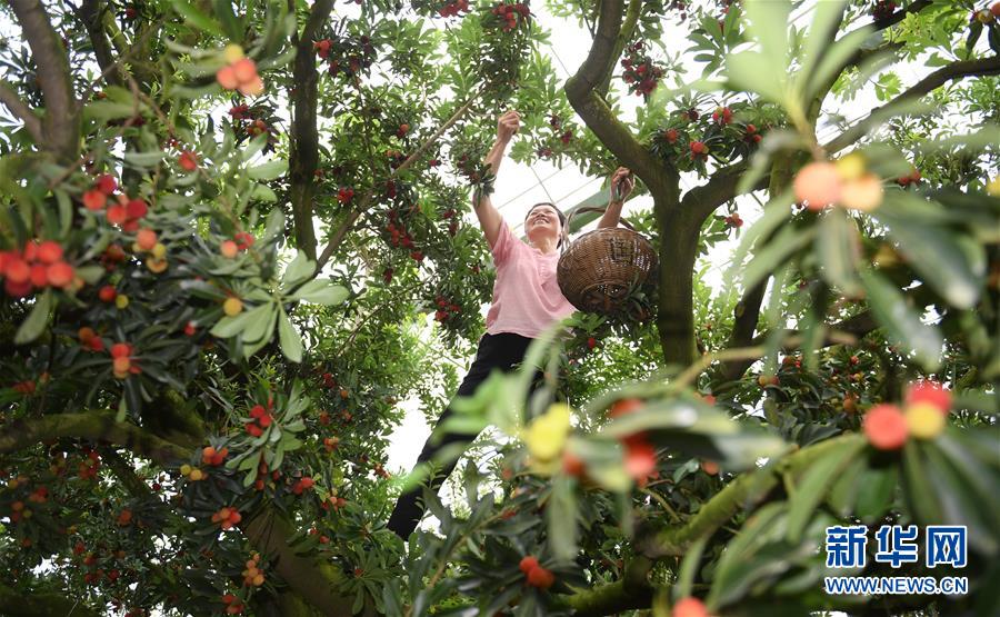 6月3日,果農(nóng)在上虞區(qū)驛亭鎮(zhèn)真山楊梅基地采摘。近日,浙江紹興上虞區(qū)二都楊梅開采。楊梅是上虞區(qū)傳統(tǒng)特色農(nóng)產(chǎn)品,目前上虞區(qū)二都楊梅種植面積1651公頃,年產(chǎn)量1.1萬噸,2019年二都楊梅成功申報國家農(nóng)產(chǎn)品地理標志認證。新華社記者翁忻旸攝。