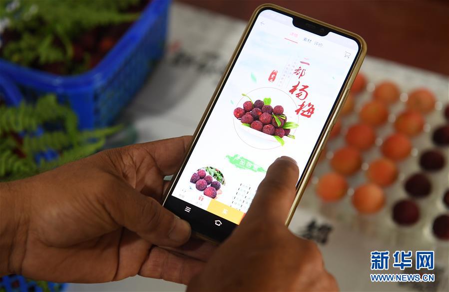 6月3日,在上虞區(qū)驛亭鎮(zhèn),鎮(zhèn)政府工作人員(右)在舜利水晶楊梅專業(yè)合作社指導(dǎo)果農(nóng)進(jìn)行電商銷售。近日,浙江紹興上虞區(qū)二都楊梅開采。楊梅是上虞區(qū)傳統(tǒng)特色農(nóng)產(chǎn)品,目前上虞區(qū)二都楊梅種植面積1651公頃,年產(chǎn)量1.1萬噸,2019年二都楊梅成功申報(bào)國家農(nóng)產(chǎn)品地理標(biāo)志認(rèn)證。新華社記者翁忻旸攝。