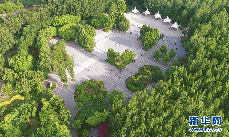 這是6月5日拍攝的文安縣森林公園(無人機照片)。近年來,河北省文安縣將植樹造林與城市建設(shè)有機融合,探索“政府引導(dǎo)、企業(yè)運作、多方共贏”的市場化植樹造林新模式,大規(guī)模推進國土綠化,打造人與自然和諧共生的優(yōu)美生態(tài)環(huán)境,構(gòu)筑京津雄綠色屏障。截至目前,該縣森林覆蓋率已經(jīng)達到33%,城區(qū)綠地面積達到36.48%。新華社記者李曉果攝。