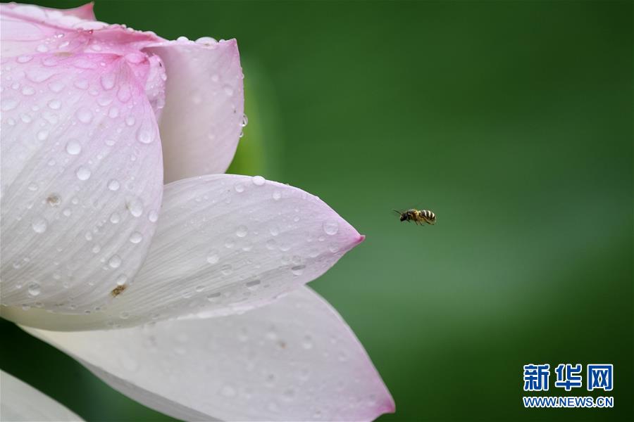 6月7日,一陣小雨過后,福州金山公園內盛開的荷花愈加嬌艷欲滴。新華社記者姜克紅攝