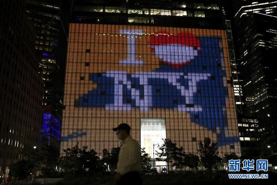 6月7日,美國紐約世貿(mào)中心一號樓外墻呈現(xiàn)出“我愛紐約”字樣。當(dāng)日,紐約州多處建筑點亮藍(lán)色和金色燈光,及用燈光效果呈現(xiàn)出“紐約堅強(qiáng)”、“我愛紐約”等字樣,致敬紐約民眾團(tuán)結(jié)抗擊疫情。新華社記者王迎攝