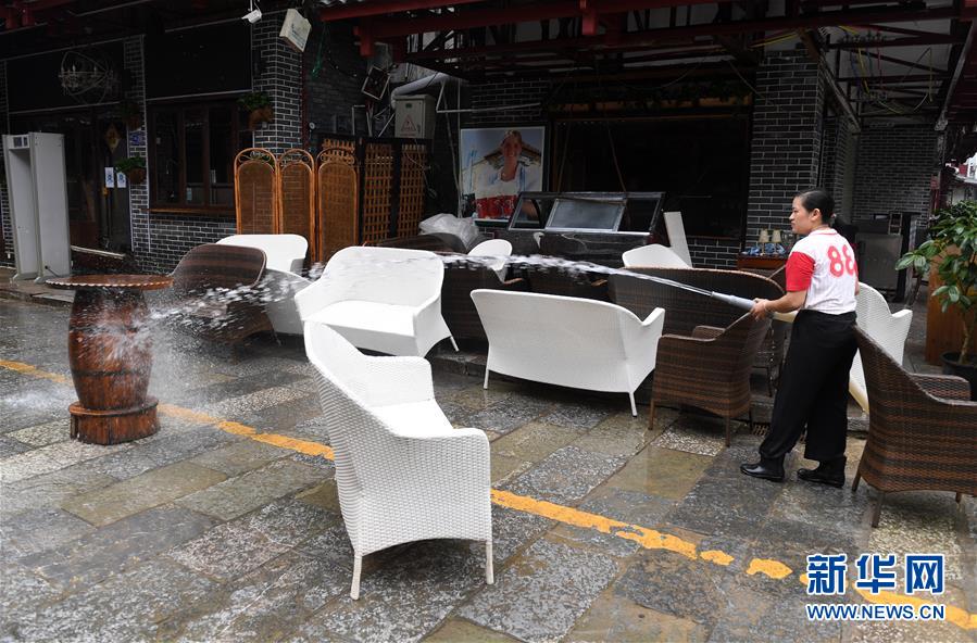 6月8日,在廣西陽(yáng)朔縣西街,一家商鋪工作人員在沖洗被洪水浸泡的桌椅。6月6日至8日,廣西陽(yáng)朔縣普降暴雨,局部降特大暴雨,全縣9個(gè)鄉(xiāng)鎮(zhèn)出現(xiàn)洪澇災(zāi)害。目前,全縣正有序開展災(zāi)后生產(chǎn)生活恢復(fù)。新華社記者陸波岸攝