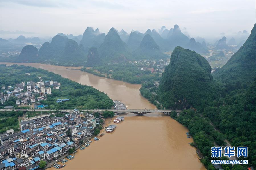 這是洪水奔流的漓江流過廣西陽(yáng)朔縣境內(nèi)(6月8日攝,無(wú)人機(jī)照片)。6月6日至8日,廣西陽(yáng)朔縣普降暴雨,局部降特大暴雨,全縣9個(gè)鄉(xiāng)鎮(zhèn)出現(xiàn)洪澇災(zāi)害。目前,全縣正有序開展災(zāi)后生產(chǎn)生活恢復(fù)。新華社記者陸波岸攝