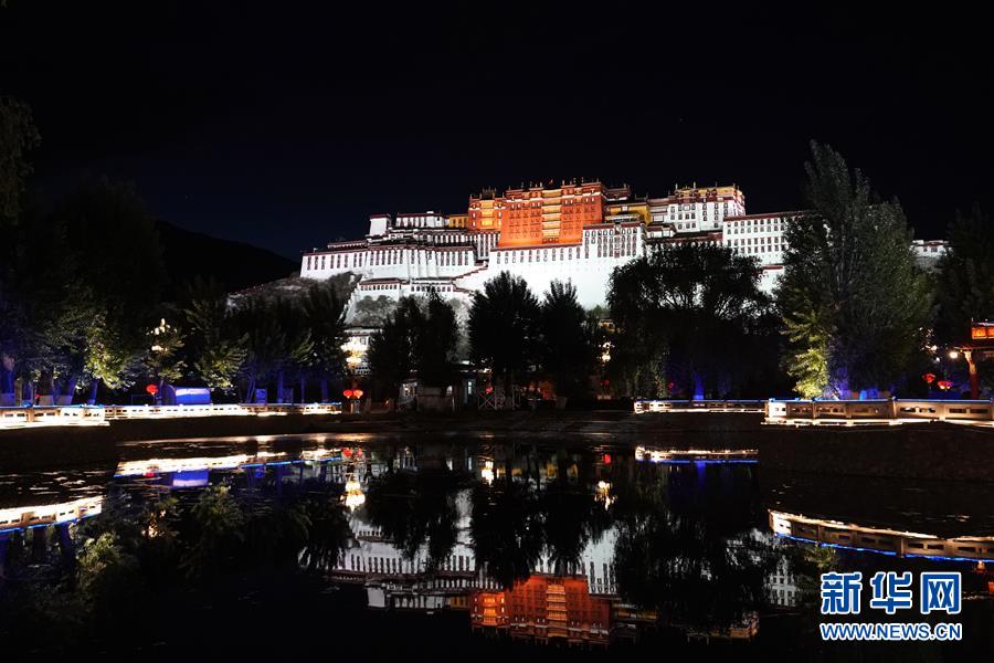這是夜色中的布達(dá)拉宮(6月8日攝)。夜幕降臨,西藏拉薩布達(dá)拉宮燈光璀璨,夜景迷人。新華社記者詹彥攝