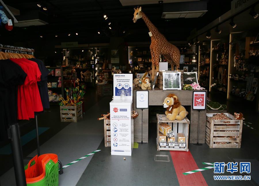 6月9日,法國巴黎動物園的紀(jì)念品商店入口處為游客提供消毒免洗洗手液,并在地上標(biāo)注了參觀方向。受新冠疫情影響關(guān)閉了近3個(gè)月的巴黎動物園于8日重新開放。新華社記者高靜攝