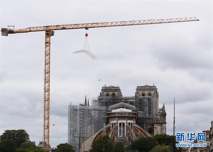 這是6月9日在法國巴黎拍攝的正在進行腳手架拆除工作的巴黎圣母院。法國巴黎圣母院于8日開始拆除去年大火中被焚的腳手架。作為巴黎圣母院修復(fù)工作的重要組成部分,這項工程預(yù)計將持續(xù)至少3個月。2019年4月15日,巴黎圣母院遭遇大火,當(dāng)時圣母院正在進行維修,搭建的腳手架在火災(zāi)中損毀、變形。新華社記者高靜攝