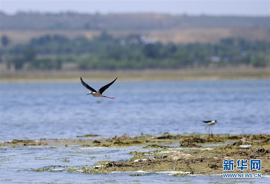 這是6月9日在泊江海子拍攝的黑翅長(zhǎng)腳鷸。近年來(lái),在當(dāng)?shù)卣亩喾N措施治理下,曾經(jīng)水面萎縮的內(nèi)蒙古自治區(qū)鄂爾多斯市境內(nèi)的泊江海子水量逐漸恢復(fù)。近期,包括遺鷗在內(nèi)的40多種鳥(niǎo)類(lèi)來(lái)此棲息,泊江海子重新成為鳥(niǎo)類(lèi)的樂(lè)園。新華社記者賈立君攝