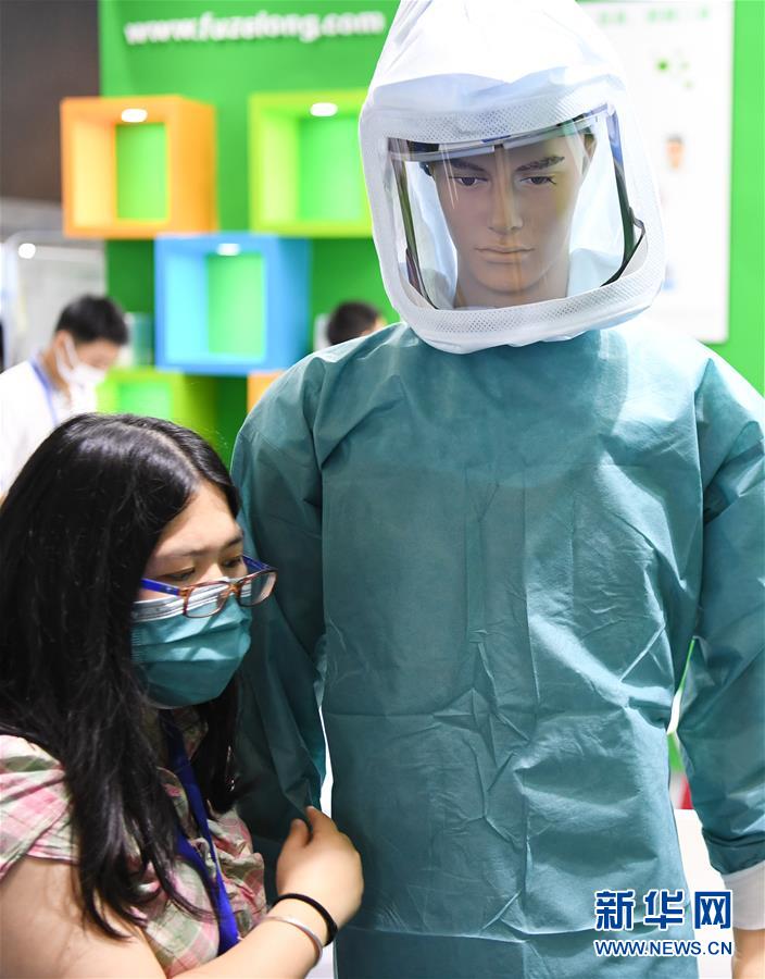 6月10日,參展工作人員在整理防護服產(chǎn)品。當日,廣州國際防疫物資展覽會在保利世貿(mào)博覽館舉行。本次展會面積共計3.6萬平方米,設(shè)有防疫產(chǎn)品、設(shè)備、綜合服務、原輔料等4個展區(qū),參展企業(yè)約600家。新華社記者鄧華攝
