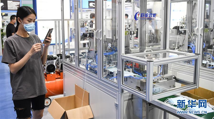 6月10日,觀眾拍攝展會上的一臺口罩生產(chǎn)設(shè)備。當日,廣州國際防疫物資展覽會在保利世貿(mào)博覽館舉行。本次展會面積共計3.6萬平方米,設(shè)有防疫產(chǎn)品、設(shè)備、綜合服務、原輔料等4個展區(qū),參展企業(yè)約600家。新華社記者鄧華攝