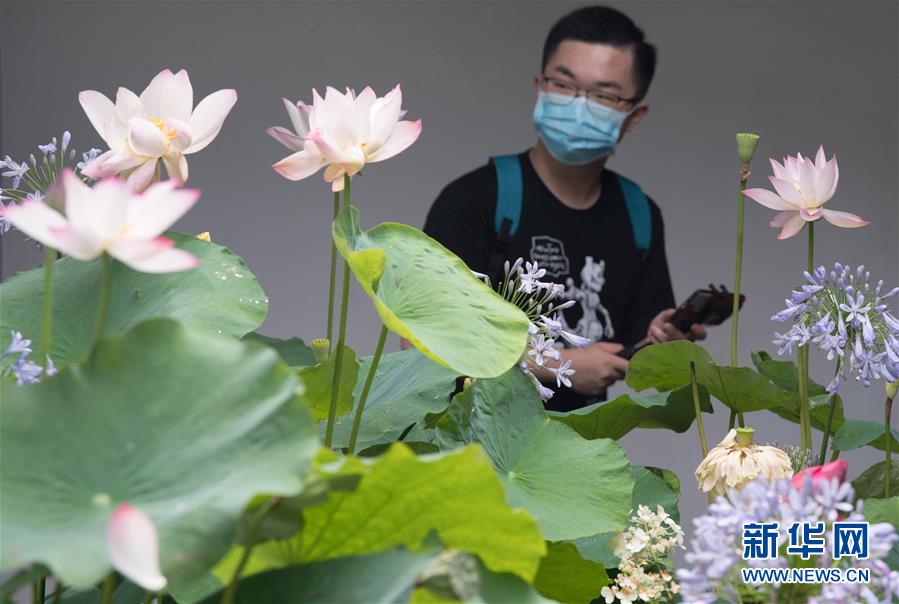 6月12日,游人在西湖曲院風(fēng)荷留影。隨著氣溫升高,杭州西湖荷花次第開(kāi)放,引得游人駐足。新華社記者 翁忻旸 攝