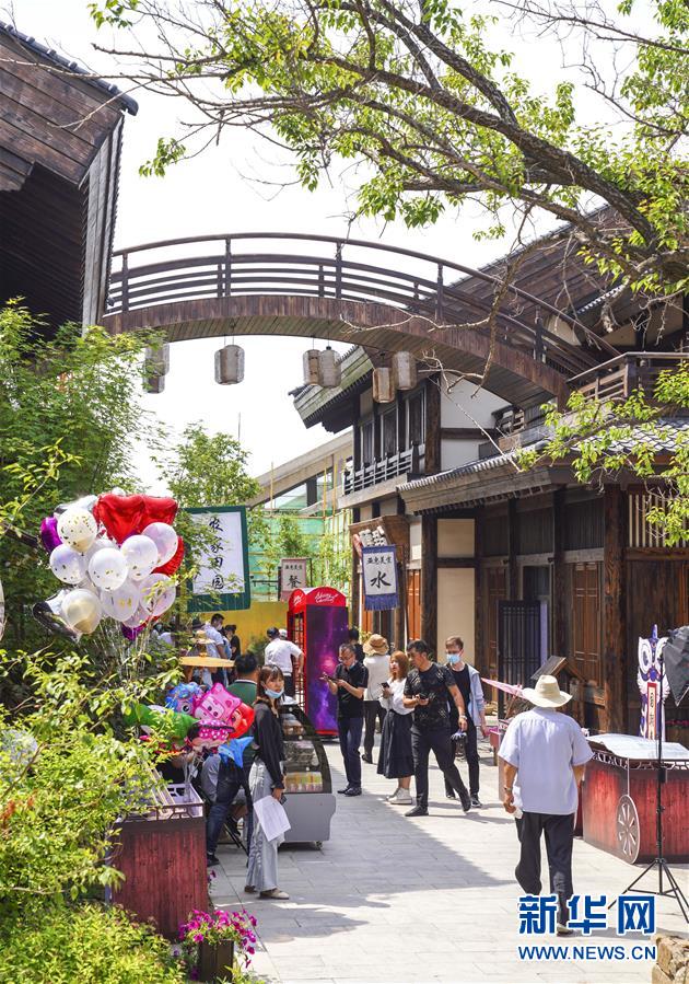 6月13日,市民在長(zhǎng)春市世茂蓮花山小鎮(zhèn)寬厚里商街參觀游覽。當(dāng)日是“文化和自然遺產(chǎn)日”。吉林長(zhǎng)春首屆蓮花山消夏生活節(jié)在世茂蓮花山小鎮(zhèn)舉行?;顒?dòng)將非遺展示與假日消暑休閑相結(jié)合,讓游人在“古色古香”的油紙傘巷中品傳統(tǒng)文化魅力,享夏日休閑愜意。新華社記者許暢攝。