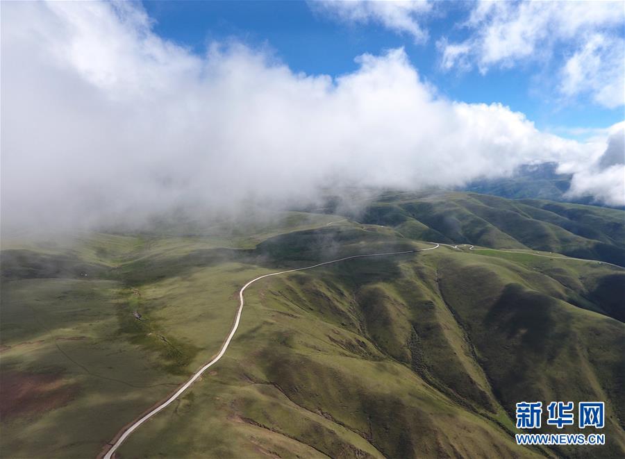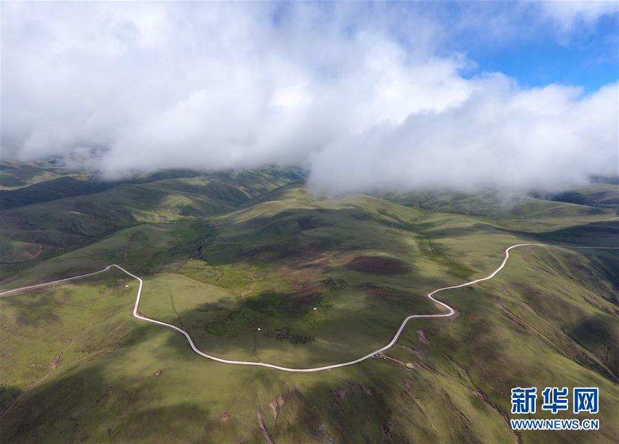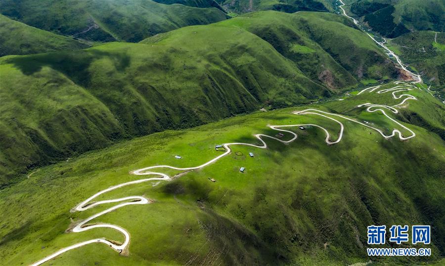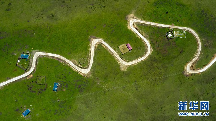 這是6月13日無(wú)人機(jī)航拍的“上南天路”和路邊的牧民居所。居住在路邊的牧民,因?yàn)橛辛诉@條路,出行更加方便。新華社記者 沈伯韓 攝