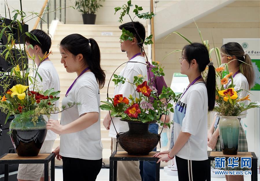 6月13日,上海應(yīng)用技術(shù)大學(xué)的學(xué)生們設(shè)計(jì)創(chuàng)作的萱草花藝作品即將在開幕式現(xiàn)場亮相。當(dāng)日,“2020中國(上海)萱草文化節(jié)”在上海應(yīng)用技術(shù)大學(xué)開幕,校園里數(shù)百個(gè)品種的萱草花競相綻放,萱草科研推廣、萱草文化交流等多項(xiàng)活動(dòng)同時(shí)舉行。新華社記者 劉穎 攝