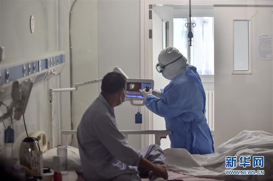 6月16日,在北京地壇醫(yī)院隔離病房內(nèi),護(hù)士檢查患者輸液情況。當(dāng)日下午,記者探訪北京市收治新冠肺炎患者的地壇醫(yī)院隔離病房。6月11日以來,北京連續(xù)發(fā)現(xiàn)新冠肺炎確診病例。截至6月16日零時(shí),新增確診病例已達(dá)106例。目前,北京市報(bào)告的確診患者均在地壇醫(yī)院治療。新華社記者 彭子洋 攝