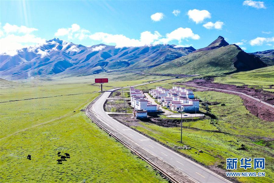 國道317線旁的一處易地扶貧搬遷點(6月14日攝,無人機(jī)照片)。新華社記者 田金文 攝