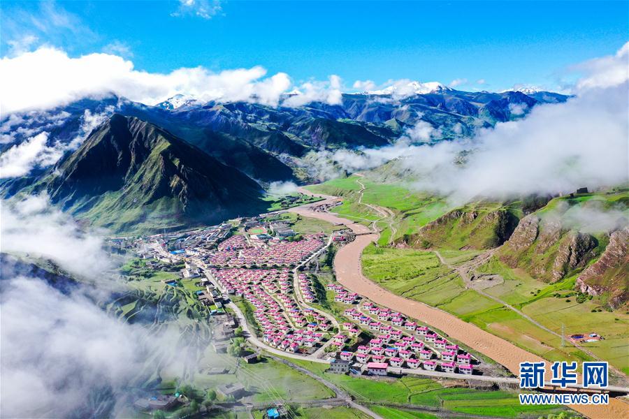 位于丁青縣嘎曲河畔的尺牘鎮(zhèn)易地扶貧搬遷點(6月14日攝,無人機(jī)照片)。新華社記者 田金文 攝