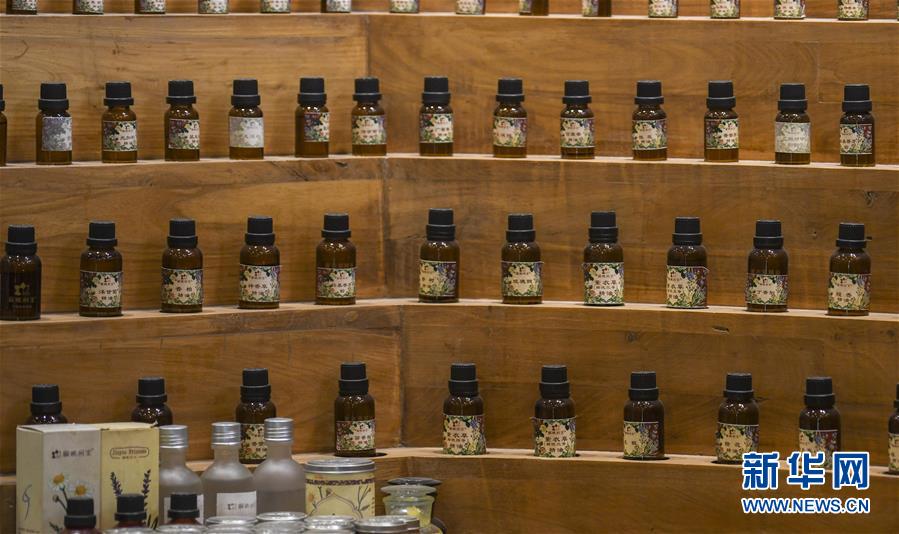 這是霍城縣解憂公主薰衣草園內(nèi)展示的各類薰衣草香料(6月16日攝)。新華社記者 趙戈 攝