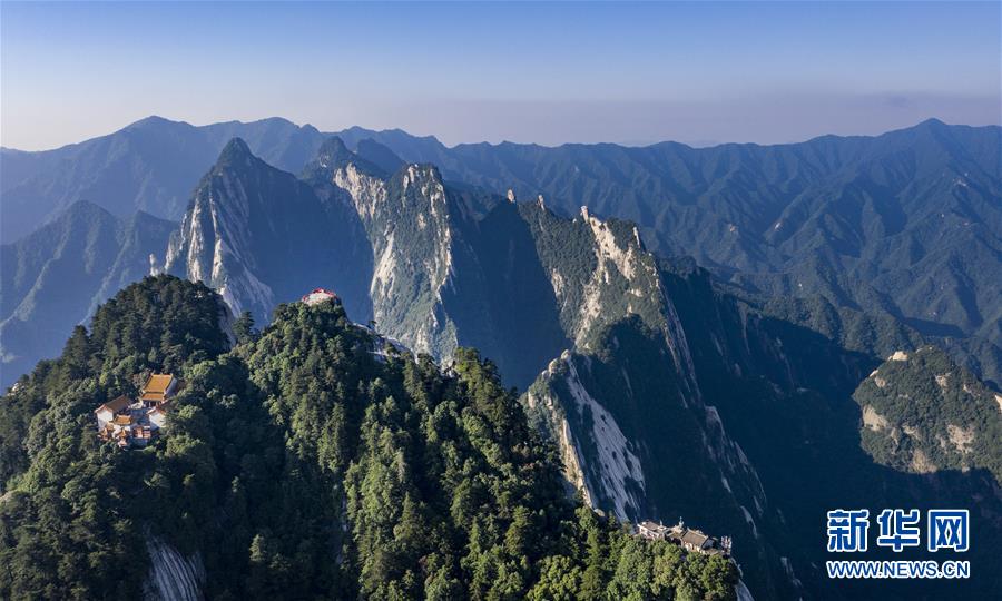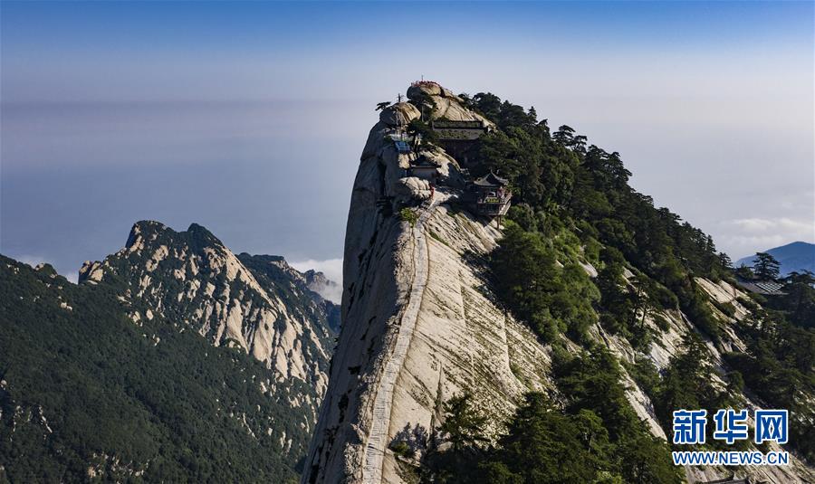 6月18日拍攝的華山西峰(無(wú)人機(jī)照片)。當(dāng)日,西岳華山經(jīng)歷連續(xù)三天暴雨后,迎來燦爛的陽(yáng)光。新華社記者 陶明 攝