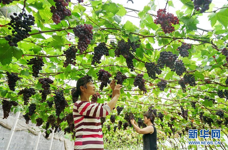 6月21日,灤州市雷莊鎮(zhèn)吉祥現(xiàn)代農業(yè)園區(qū)的員工在打理種植的葡萄。近年來,河北省灤州市積極調整農業(yè)產業(yè)結構,鼓勵當?shù)睾献魃绾娃r戶發(fā)展果蔬種植,豐富當?shù)剞r產品種類,越來越多的農民依靠“果園子”“菜籃子”鼓起了“錢袋子”。新華社記者牟宇攝
