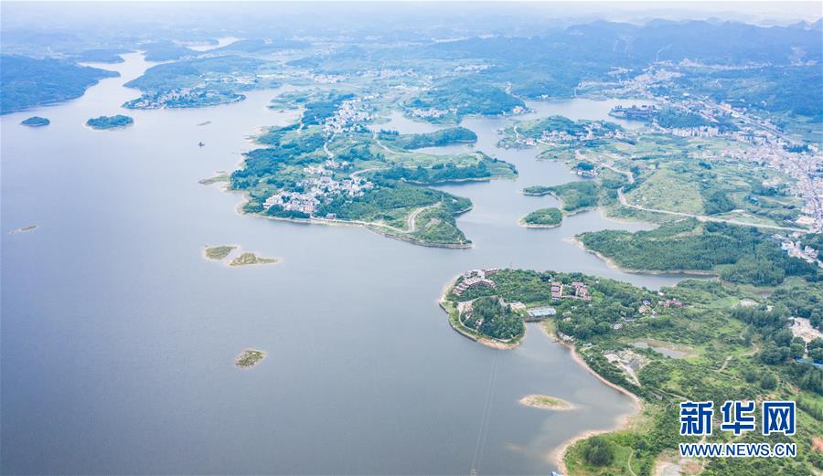 6月21日拍攝的紅楓湖景區(qū)風(fēng)光(無人機(jī)照片)。夏至?xí)r節(jié),貴州省清鎮(zhèn)市紅楓湖景區(qū)草木蒼翠,秀麗的湖光山色吸引不少游客前來游玩。新華社記者陶亮攝
