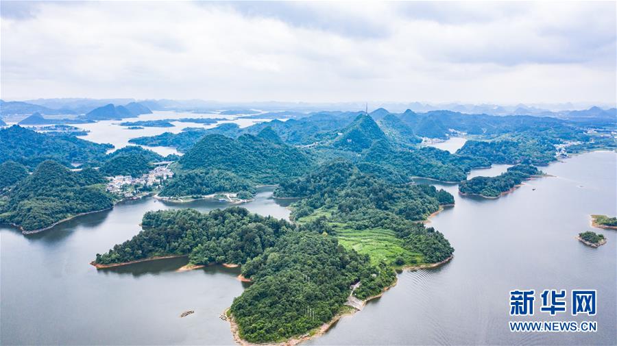 6月21日拍攝的紅楓湖景區(qū)風(fēng)光(無人機(jī)照片)。夏至?xí)r節(jié),貴州省清鎮(zhèn)市紅楓湖景區(qū)草木蒼翠,秀麗的湖光山色吸引不少游客前來游玩。新華社記者陶亮攝