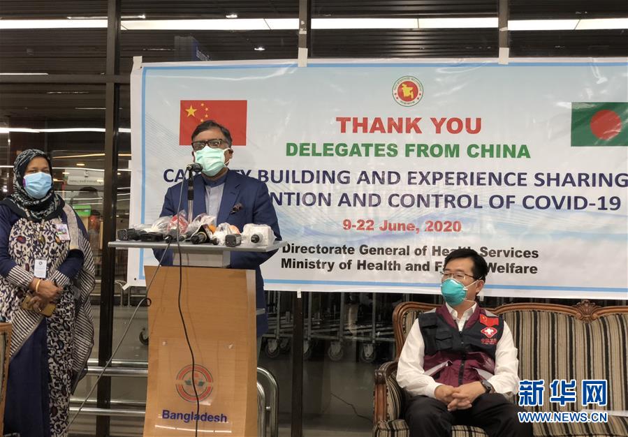 6月22日,孟加拉國(guó)衛(wèi)生和家庭福利部部長(zhǎng)馬利克(中)在首都達(dá)卡舉行的送行儀式上致辭感謝中方專家組。中國(guó)赴孟加拉國(guó)抗疫醫(yī)療專家組圓滿完成任務(wù),于22日乘機(jī)返回祖國(guó)。孟加拉國(guó)衛(wèi)生和家庭福利部部長(zhǎng)馬利克對(duì)疫情發(fā)生以來(lái)中國(guó)給予孟加拉國(guó)的大力支持表示感謝。新華社記者劉春濤攝