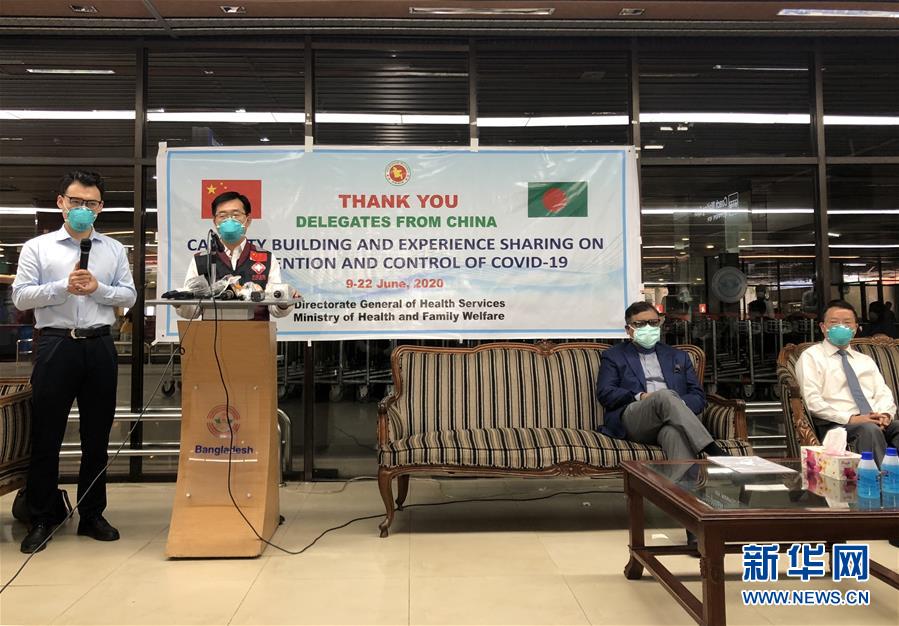 6月22日,孟加拉國衛(wèi)生和家庭福利部部長馬利克(右六)等在首都達卡舉行的送行儀式上與中方專家組合影留念。中國赴孟加拉國抗疫醫(yī)療專家組圓滿完成任務,于22日乘機返回祖國。孟加拉國衛(wèi)生和家庭福利部部長馬利克對疫情發(fā)生以來中國給予孟加拉國的大力支持表示感謝。新華社記者劉春濤攝