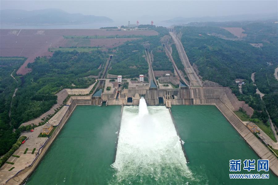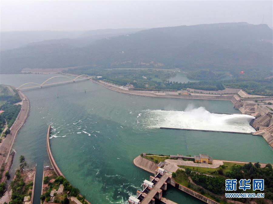 這是6月23日拍攝的黃河小浪底水利樞紐工程(無(wú)人機(jī)照片)。近日,黃河小浪底水利樞紐工程開(kāi)啟洪水調(diào)度運(yùn)用模式,從空中俯瞰,蔚為壯觀。新華社記者馮大鵬攝