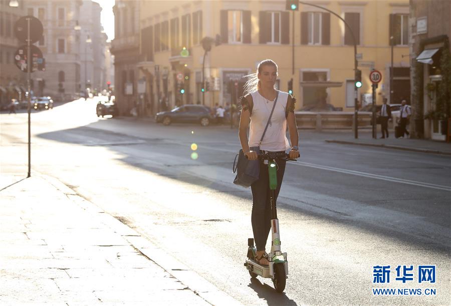 6月23日,在意大利首都羅馬,一名女子騎著電動踏板車在城市中穿行。隨著意大利新冠疫情繼續(xù)緩解,城市的街道上也逐漸恢復了往日的喧鬧。由于體積小、易于使用,電動踏板車迅速成為了人們城市短途出行的首選。新華社記者程婷婷攝