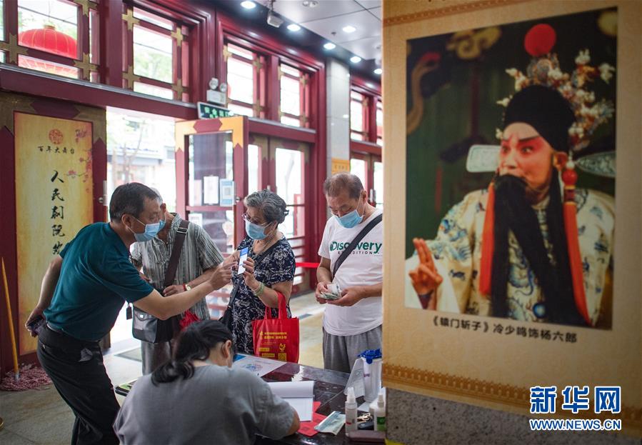 6月26日,市民掃健康碼登記后進(jìn)入武漢市人民劇院。當(dāng)日,武漢市中心7家劇場(chǎng)恢復(fù)開(kāi)放,各大文藝院團(tuán)恢復(fù)線下演出,市民再次坐在劇場(chǎng)內(nèi)觀看“戲碼頭”上群星云集、百戲薈萃。新華社記者 肖藝九 攝