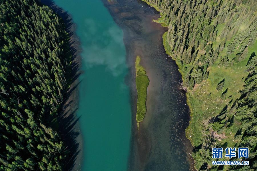 這是6月25日拍攝的新疆喀納斯景區(qū)風(fēng)光(無人機照片)。新華社記者 沙達提 攝