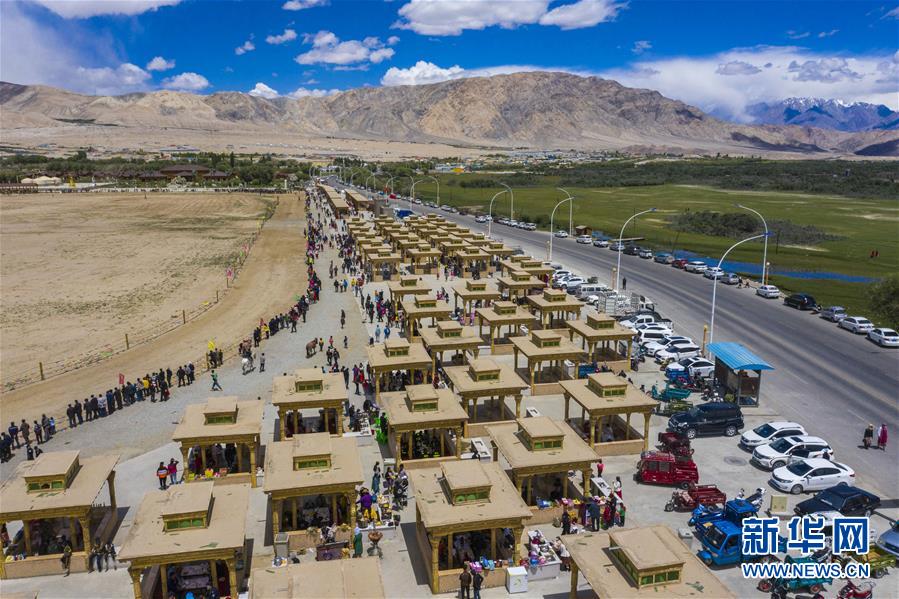 6月25日,人們?cè)谛陆矌?kù)爾干塔吉克自治縣端午節(jié)群眾性文化體育活動(dòng)現(xiàn)場(chǎng)購(gòu)物、品嘗美食、觀看賽馬(無(wú)人機(jī)照片)。當(dāng)日,新疆塔什庫(kù)爾干塔吉克自治縣端午節(jié)群眾性文化體育活動(dòng)在位于縣城附近的非物質(zhì)文化遺產(chǎn)展示園拉開(kāi)帷幕。本次活動(dòng)為期三天,將舉辦豐富多彩的文藝演出和多項(xiàng)非物質(zhì)文化遺產(chǎn)展示表演,充實(shí)居民和游客的節(jié)日文化生活。新華社記者胡虎虎攝