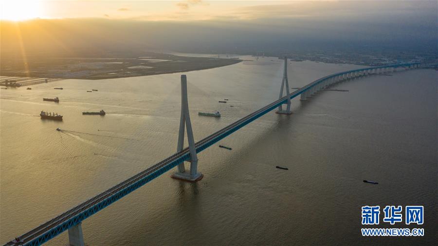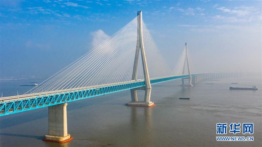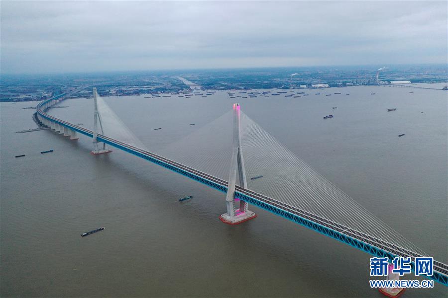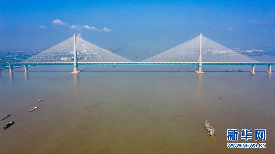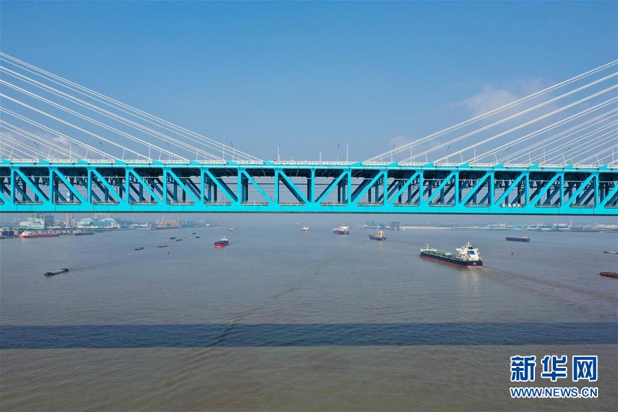 滬蘇通長江公鐵大橋(6月29日攝,無人機照片)。即將于7月1日通車的滬蘇通長江公鐵大橋北起江蘇南通,南至江蘇張家港,公鐵合建跨江正橋全長5827米,為集合高速公路、客貨混線鐵路、高速鐵路的“三合一”過江通道,建成通車后將有效促進長三角城市群跨江融合、協(xié)同發(fā)展。新華社記者季春鵬攝