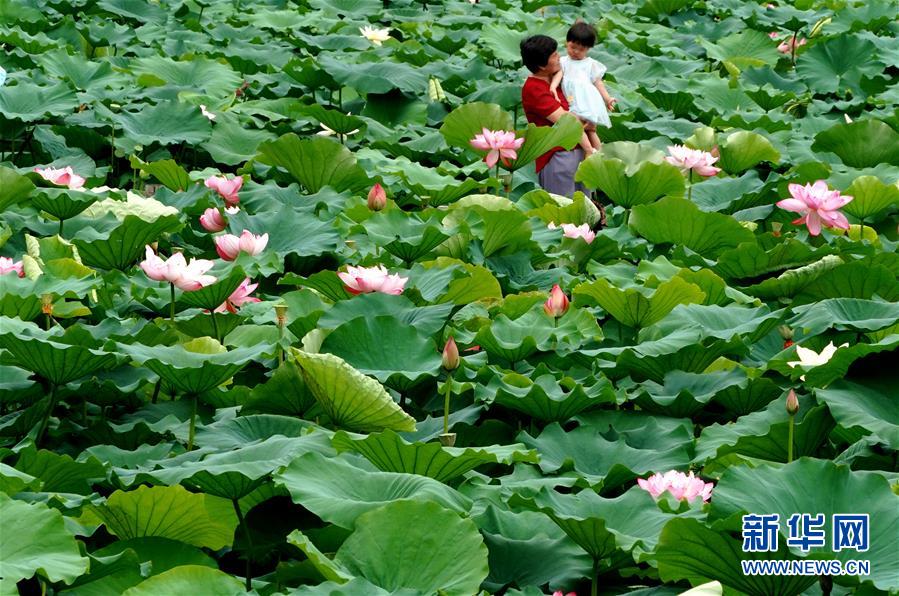 河南鄭州紫荊山公園內(nèi)盛開(kāi)的荷花(6月30日攝)。新華社記者李安攝
