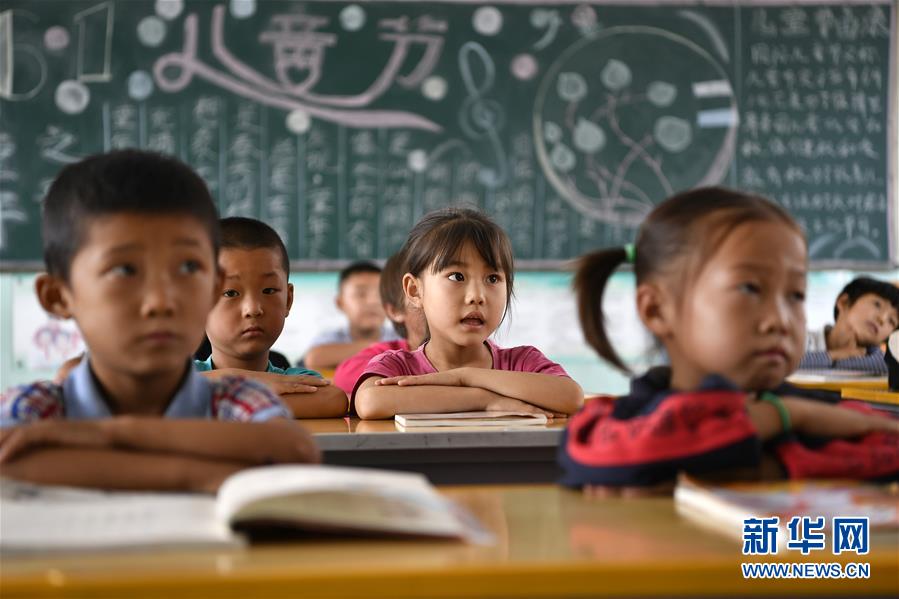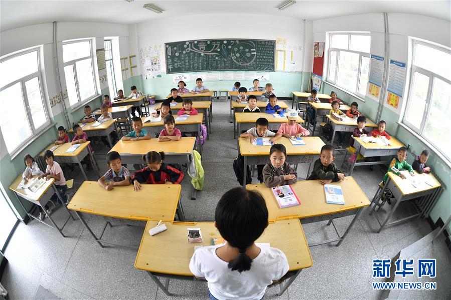 寧夏銀川市永寧縣閩寧鎮(zhèn)原隆村原隆小學(xué),一年級的孩子們在上課(2019年9月3日攝)。新華社記者王鵬攝