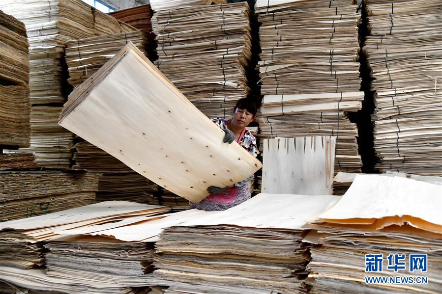 6月30日,在費縣坤林木業(yè)有限公司,工人在整理板材原料。地處沂蒙革命老區(qū)的山東省臨沂市費縣探沂鎮(zhèn)近年來圍繞鄉(xiāng)村振興戰(zhàn)略,謀劃“一鎮(zhèn)一業(yè)”,以木業(yè)產(chǎn)業(yè)為抓手,積極引導(dǎo)全鎮(zhèn)3136家木業(yè)企業(yè)進行園區(qū)化、集約化、智能化發(fā)展,成為遠近聞名的“木業(yè)特色小鎮(zhèn)”。2019年,該鎮(zhèn)規(guī)模以上工業(yè)總產(chǎn)值187億元,農(nóng)民人均純收入2萬元左右,木業(yè)產(chǎn)業(yè)有力助推當?shù)氐泥l(xiāng)村振興。新華社記者郭緒雷攝