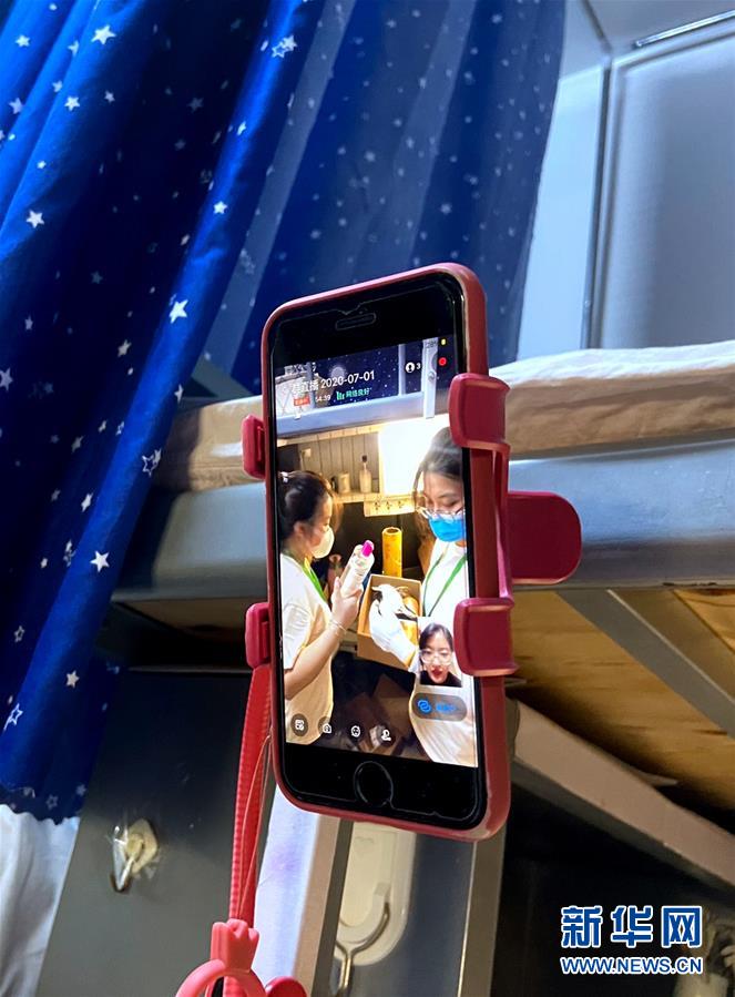 7月1日,在北理工學生宿舍,輔導員通過手機視頻方式,核對畢業(yè)生的個人物品。6月29日起,北京理工大學教職員工開始為2020屆6000多名需要打包的畢業(yè)生集中進行行李打包、郵寄和留置物品存放工作。經(jīng)過提前與畢業(yè)生“一對一”溝通,老師們耐心細致地通過手機“直播”打包行李的全過程,與每一個同學認真核對其個人物品,細心收納擺放、整理密封、搬運寄送,讓不能返校的畢業(yè)生們安心、放心。新華社記者魏夢佳攝